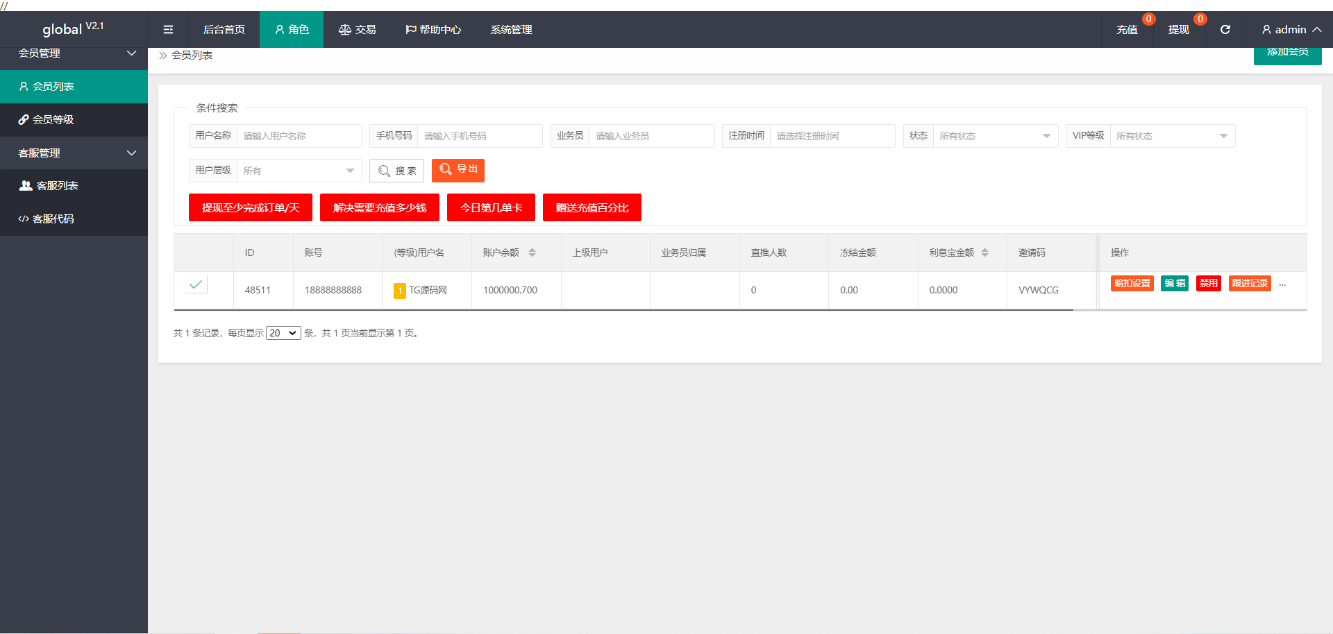 可以设置需要做多少单才能提现,设置解决卡住的订单需要多少费用,每天第几单卡单,赠送充值百分比设置等功能